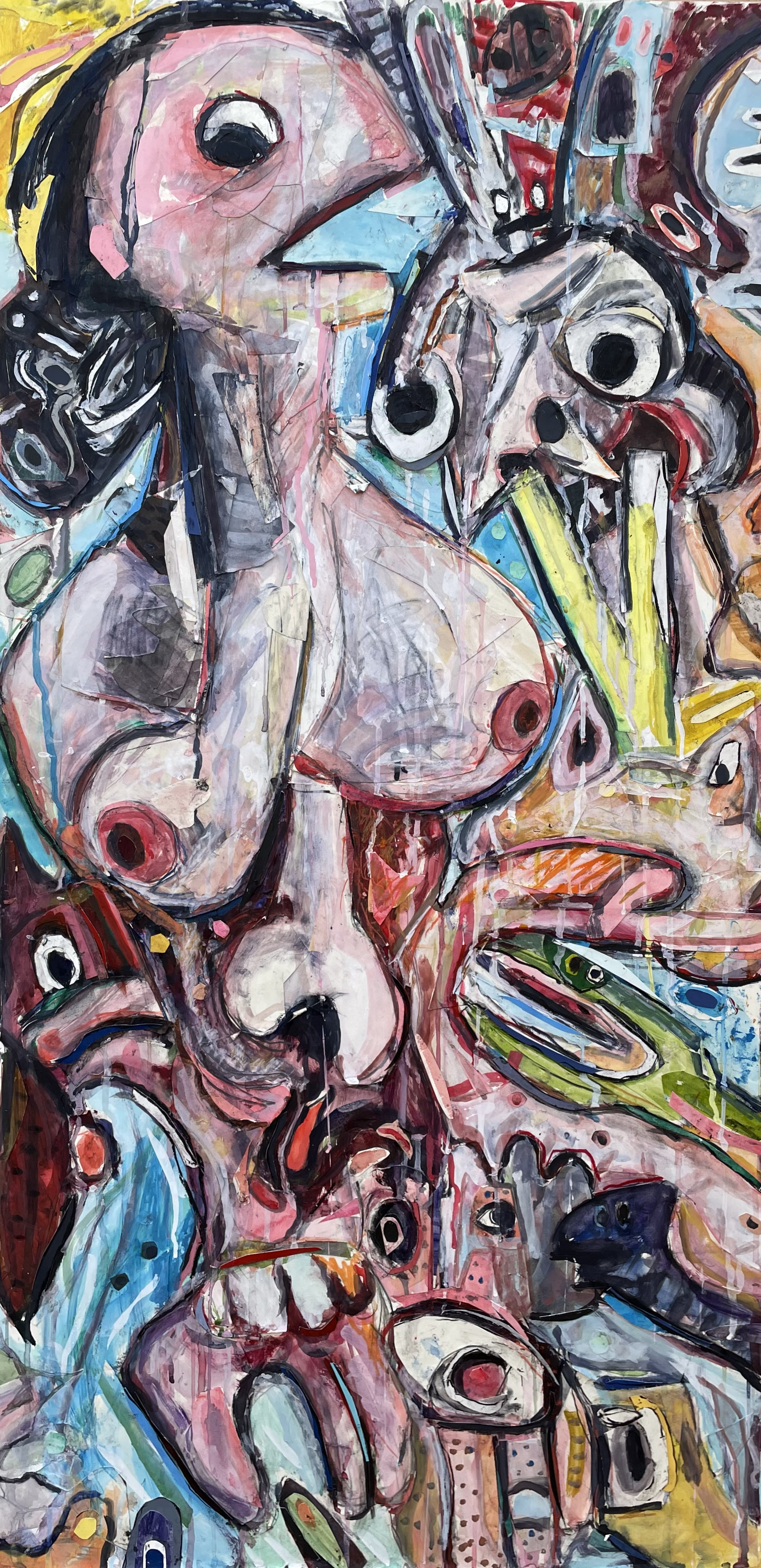 "Lust" Mixed Media Collage on Panel, 48" x 24", 2017